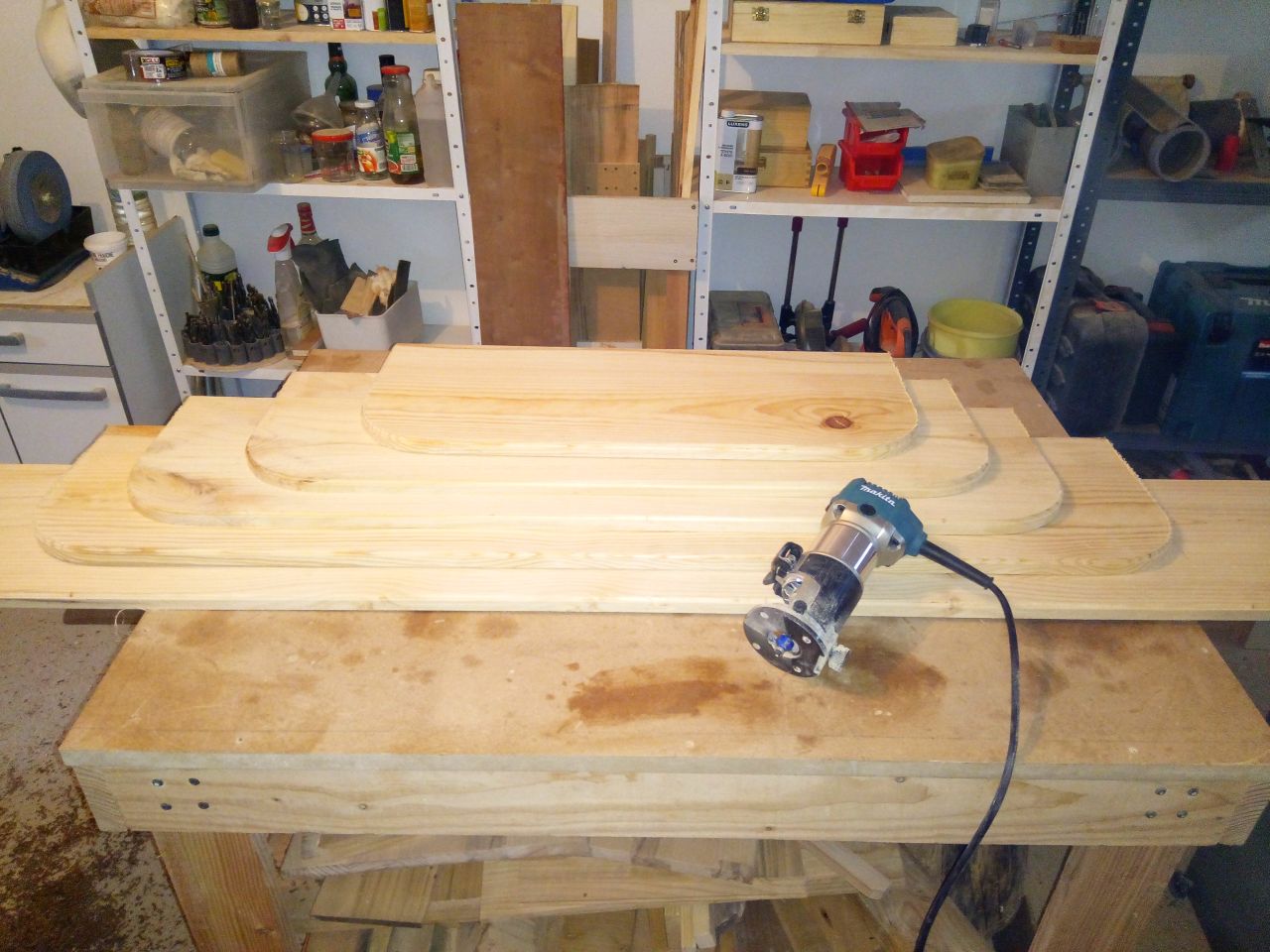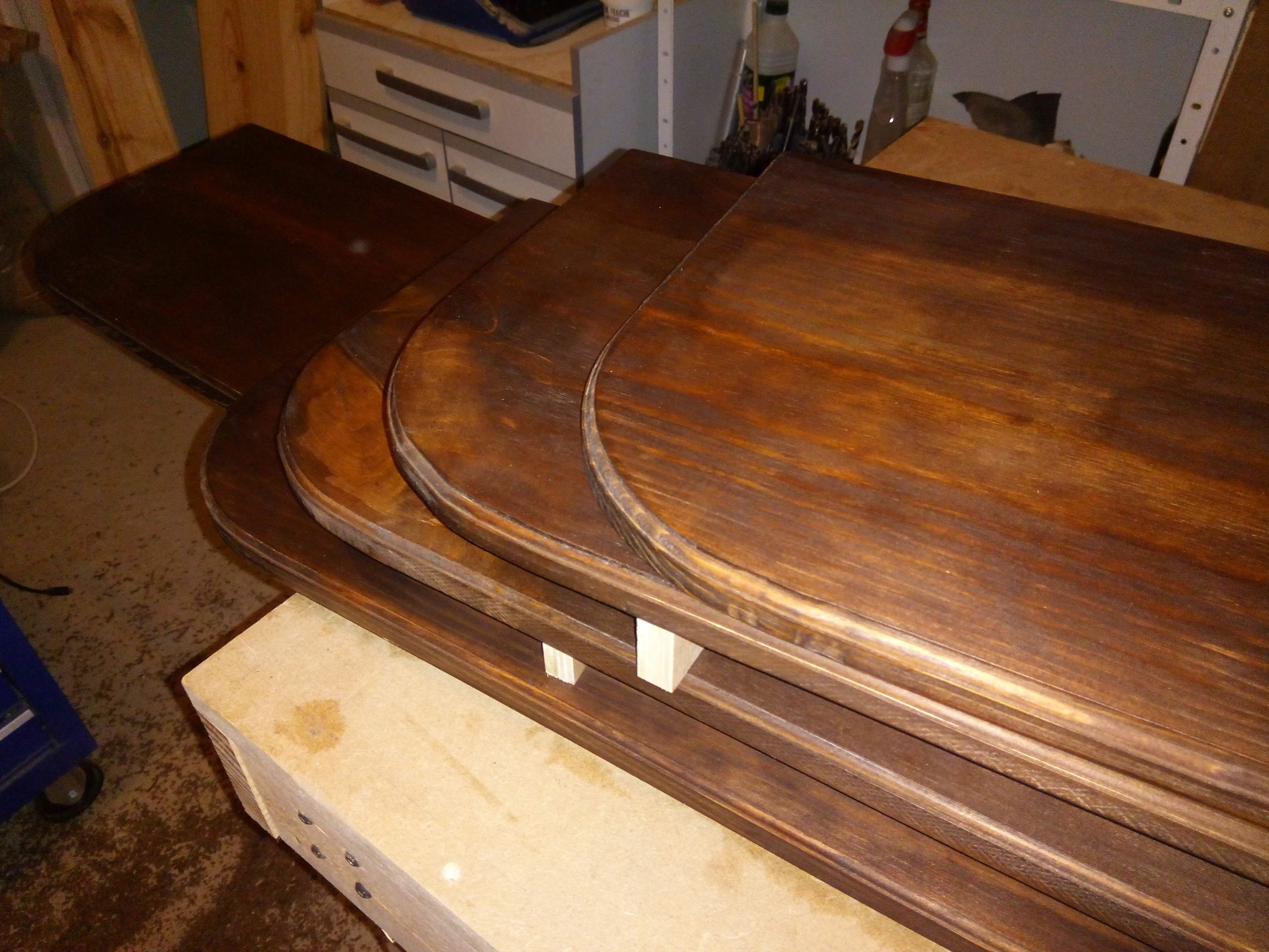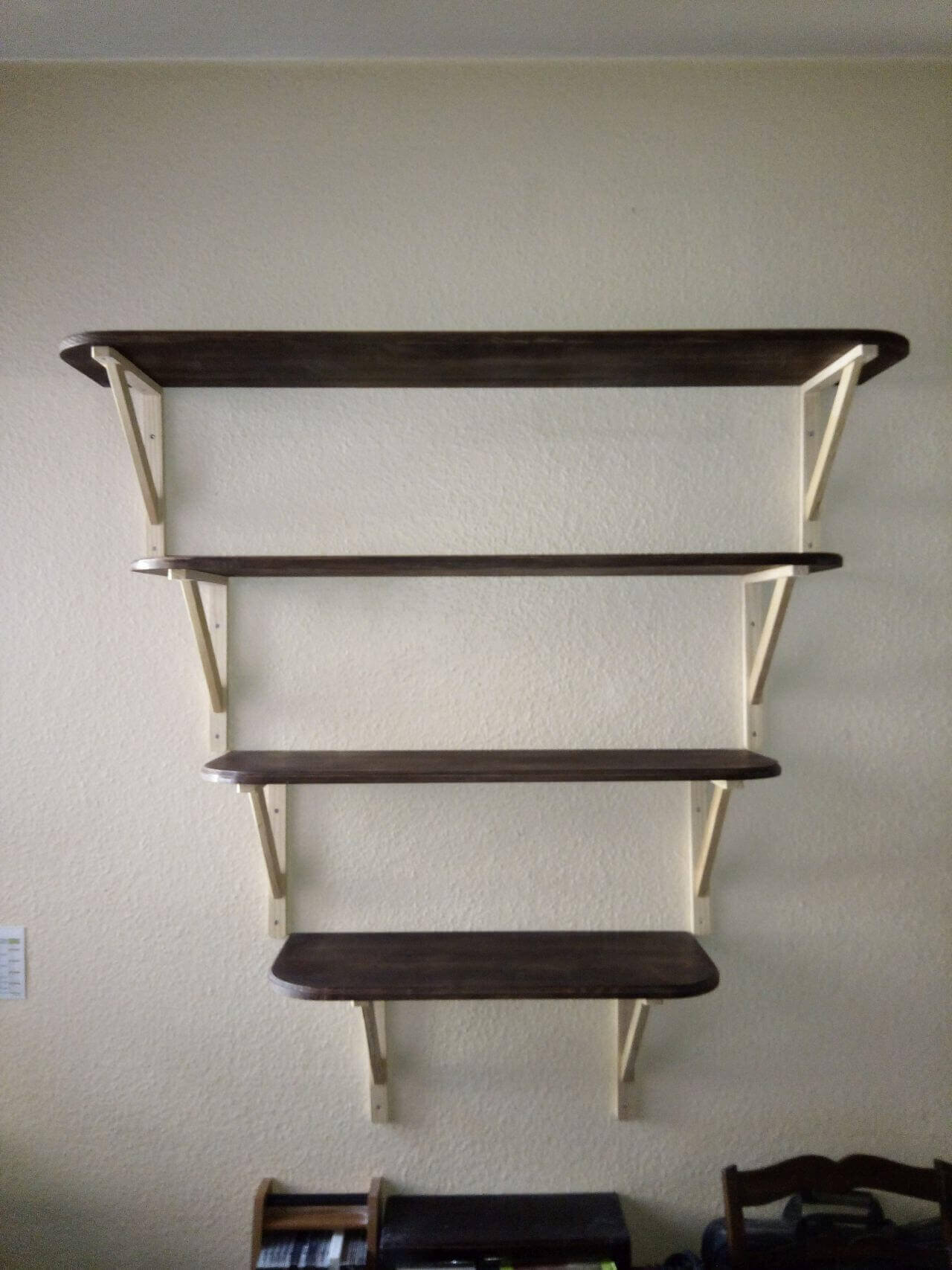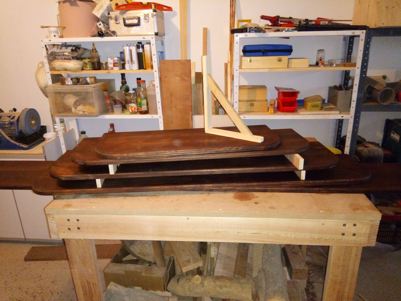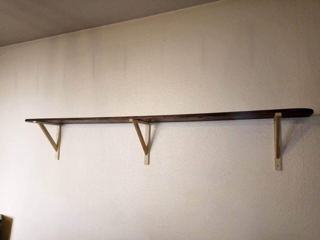 Étagères en sapin et équerres en hêtre.