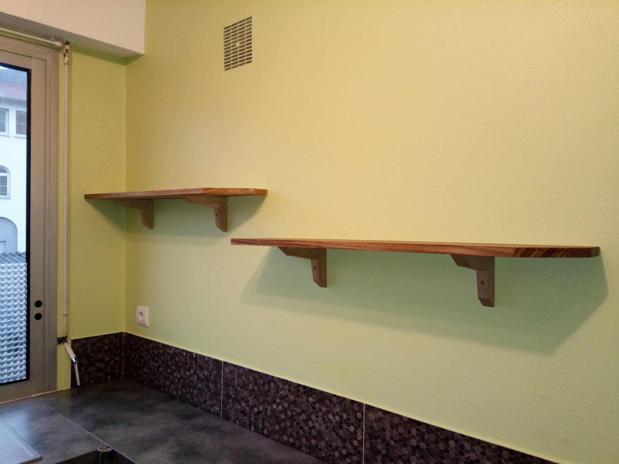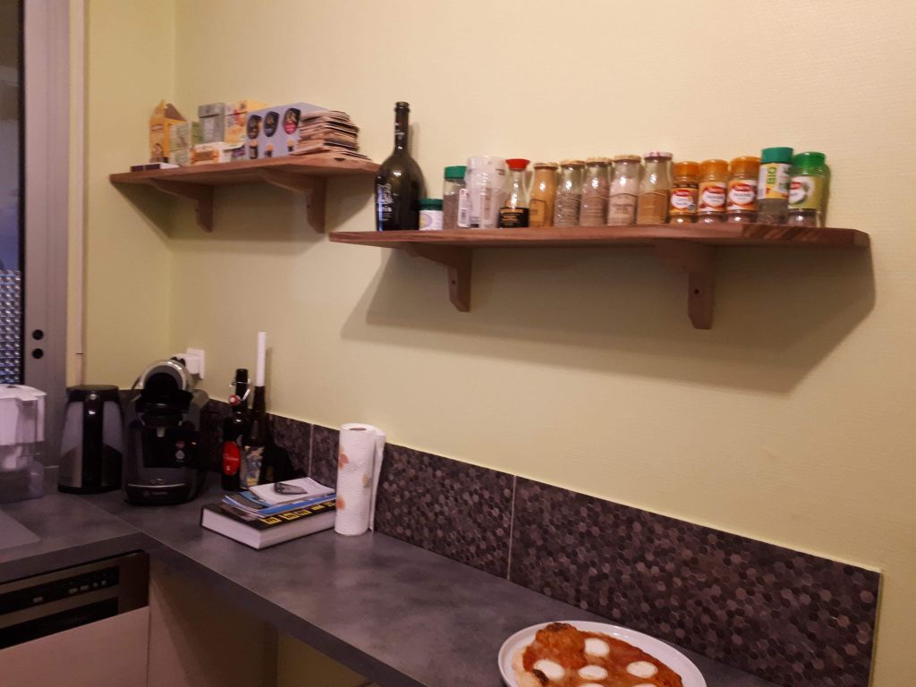 Installation d’étagères. Finition à l’huile de lin. Le client était très satisfait. 🙂